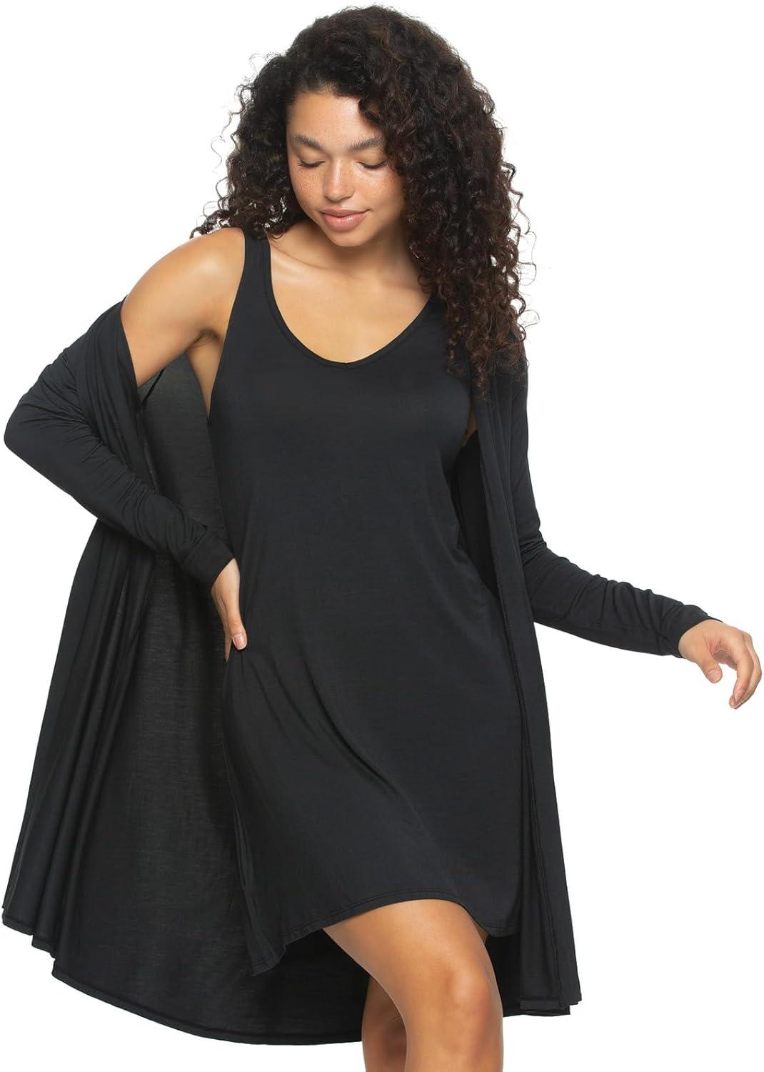 Felina Modal Tank Chemise And Wrap – Womens Loungewear, Posh Pajama Sets For Women – Lounge Set(Black)