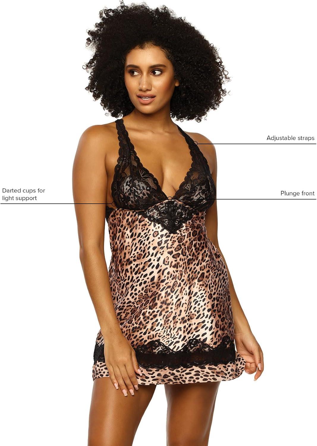 Felina Jezebel Women’s Adrienne Satin Chemise Sexy Sleepwear for Women – Lightweight with Adjustable Straps- Animal Print(Cranes)