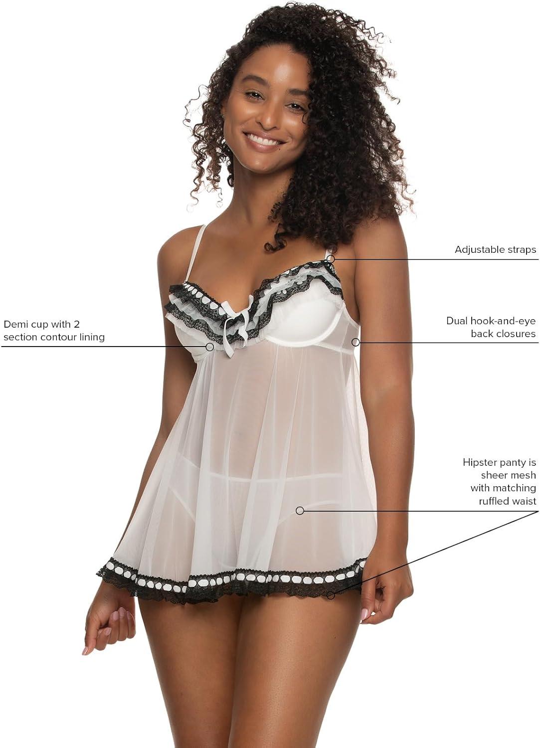 Felina Ruffles Galore Chemise with Hipster Panty, Womens Lingerie(Shell Gingham)