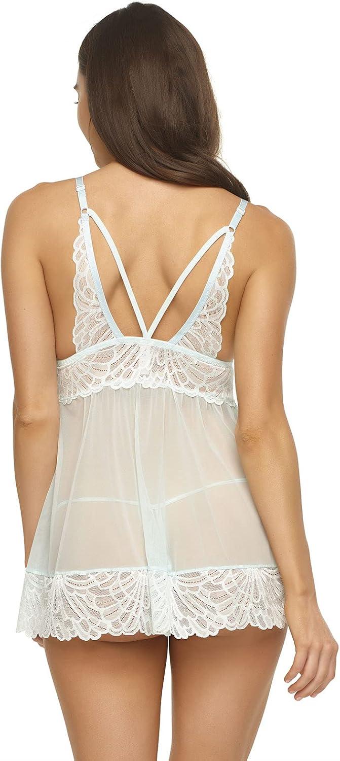 Felina Sarah Babydoll Butterfly Lace Chemise, Womens Nightgown/Lingerie(Bridal Blue)