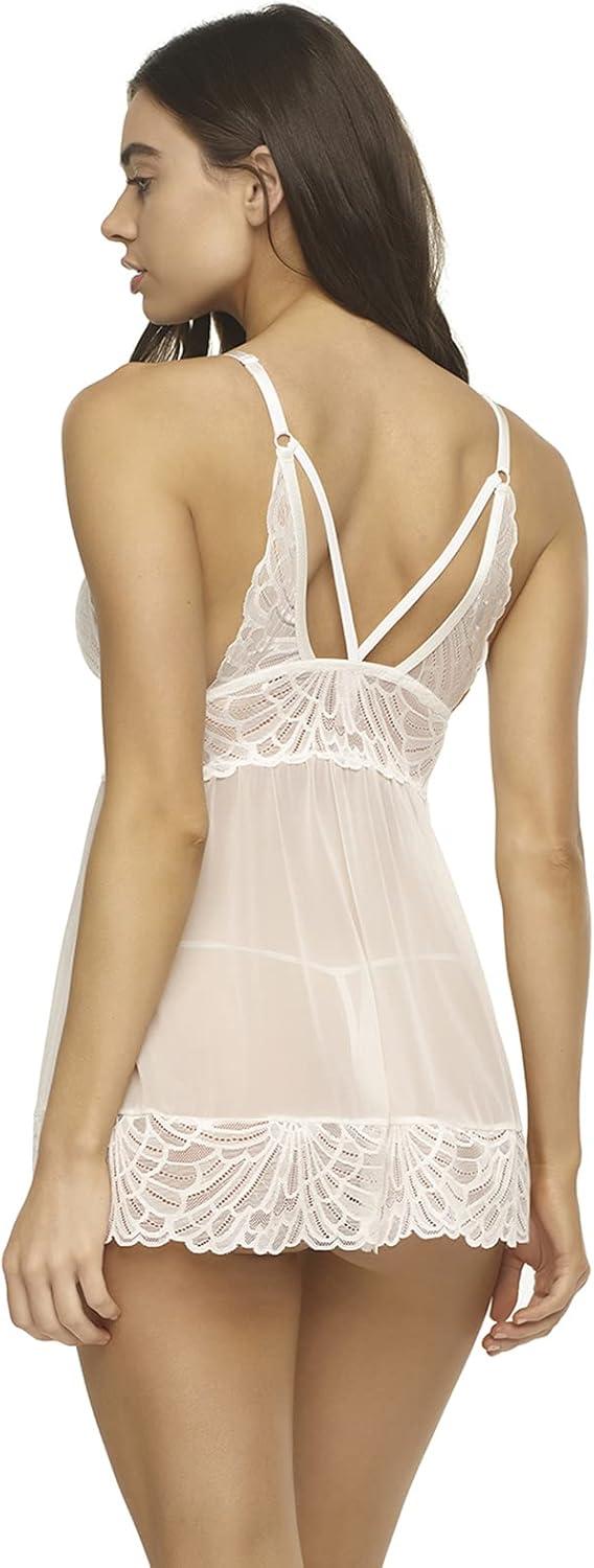 Felina Sarah Babydoll Butterfly Lace Chemise, Womens Nightgown/Lingerie(White)