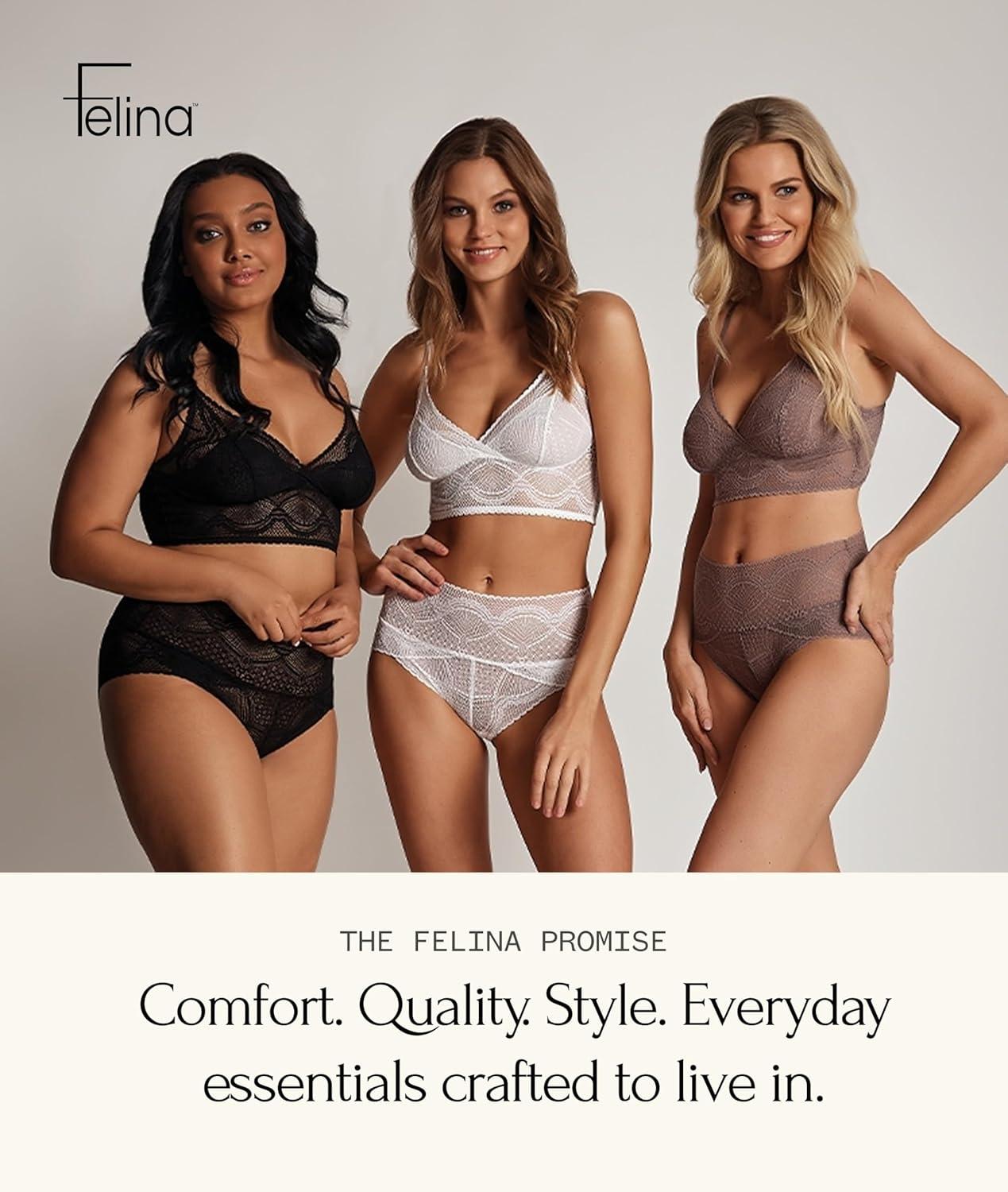 Our Finesse Cami Bralette is made with a gorgeous lace design that enhances your beauty the moment you put it on and gives you sexy confidence anywhere you go. With this bralette, you’re going to look as good as you feel. The stretchable and breathable lace fabric provides comfort that will make you feel like royalty under any outfit or during any activity. Feel the Felina difference with a luxuriously comfortable bralette that doesn’t sacrifice your support. This bralette maintains separation and shape all day long. This is the perfect bra for summertime, thanks to the extra breathable fabric and beautiful lace design that goes perfectly with your favorite sundress. Every woman deserves the bralette that's best for their body, and to feel the Felina difference. That’s why we make our bralettes (and all of our products) with inclusive sizing, from small to plus size. All in a variety of colors that allow you to express your unique style.