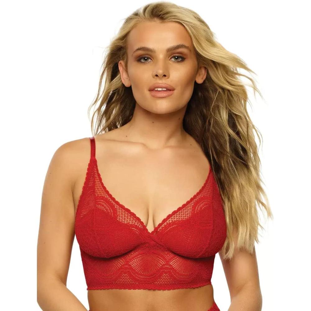 Felina Finesse Cami Bralette – Stretchy Lace Bralettes for Women – Sexy and Comfortable(Tango Red)