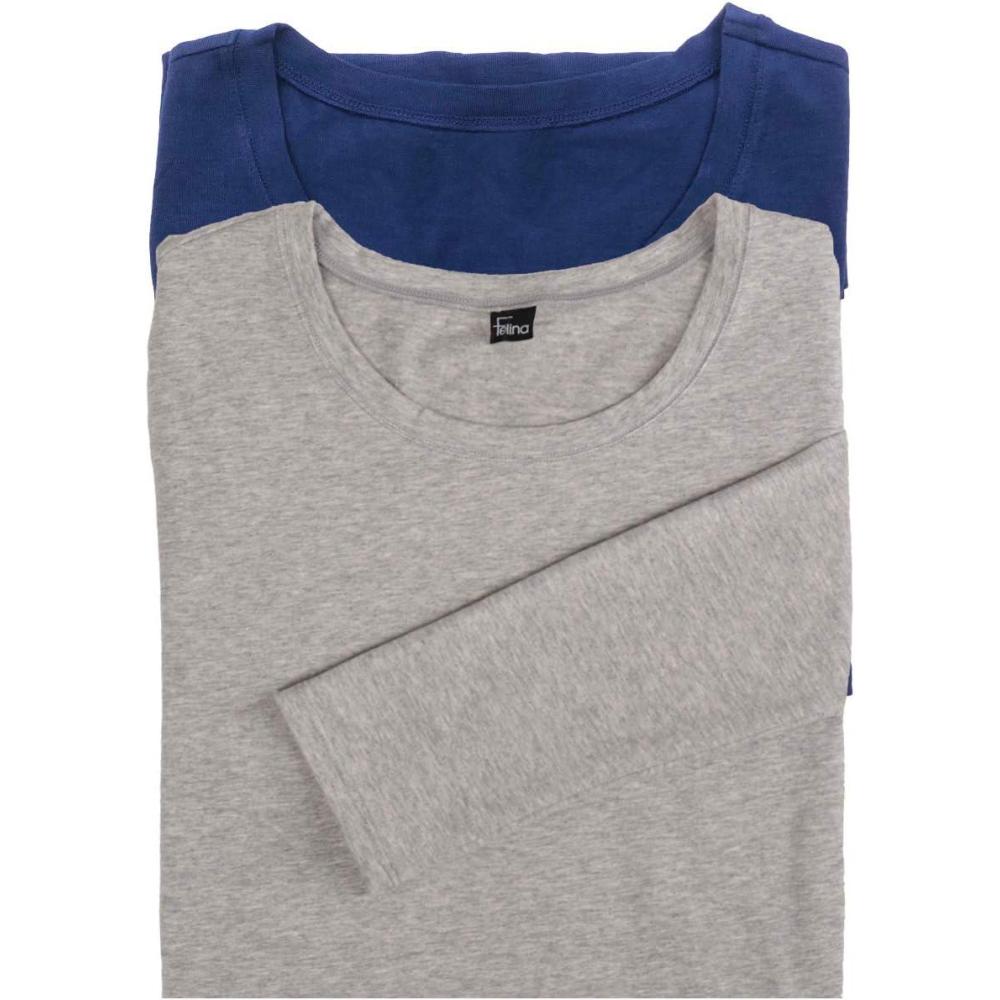Felina | Key Item Long Sleeve Crew Neck Tee | Cotton & Modal | 2-Pack(Gray Navy)