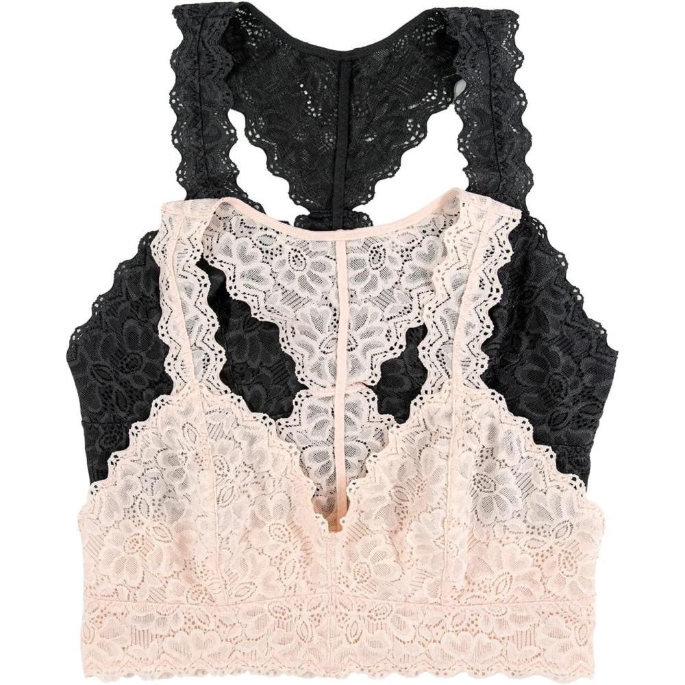 The Lace Bralette 2-Pack from Jezebel by Felina with T-Back features a wide comfortable band and light mesh lining adds support. Perfect for layering!