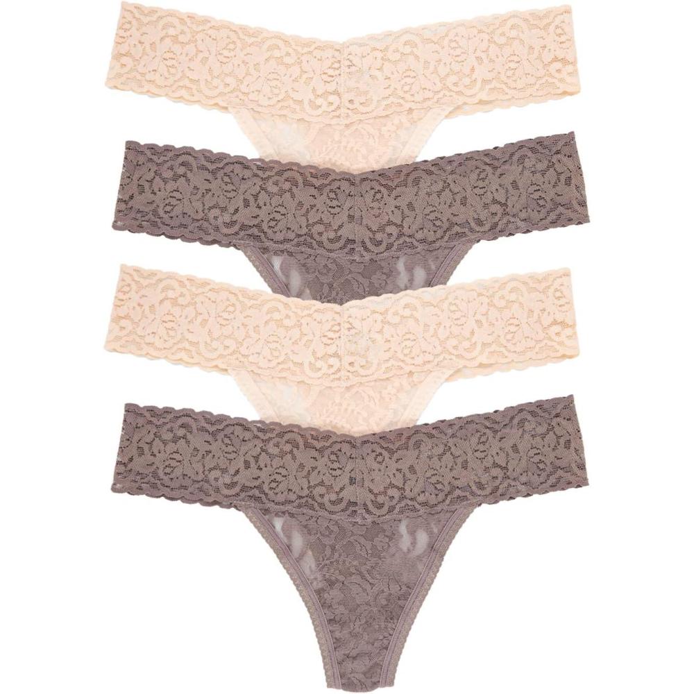 Felina Stretchy Lace Low Rise Thong – Sexy Underwear for Women, Thongs for Women, Seamless Panties for Women (4-Pack)(Cocoa Combo)