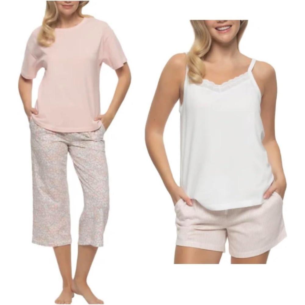 Felina Women's 4 Piece 100% Cotton Sleep Pajama Set, Tee, Tank, Short, and Capri Pant