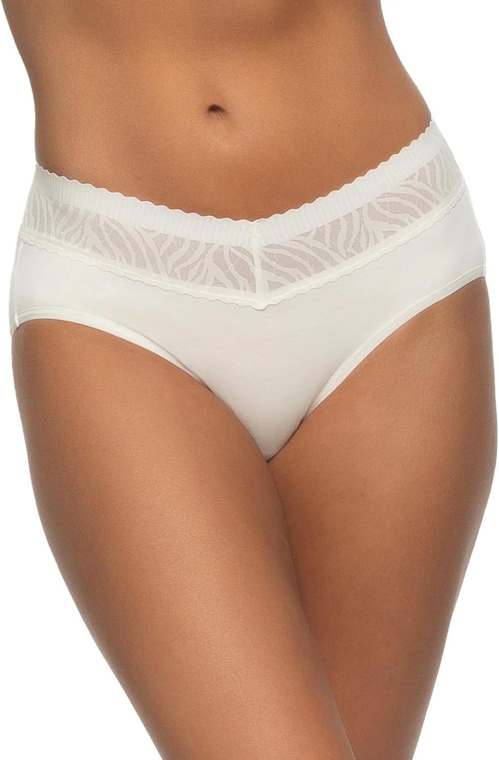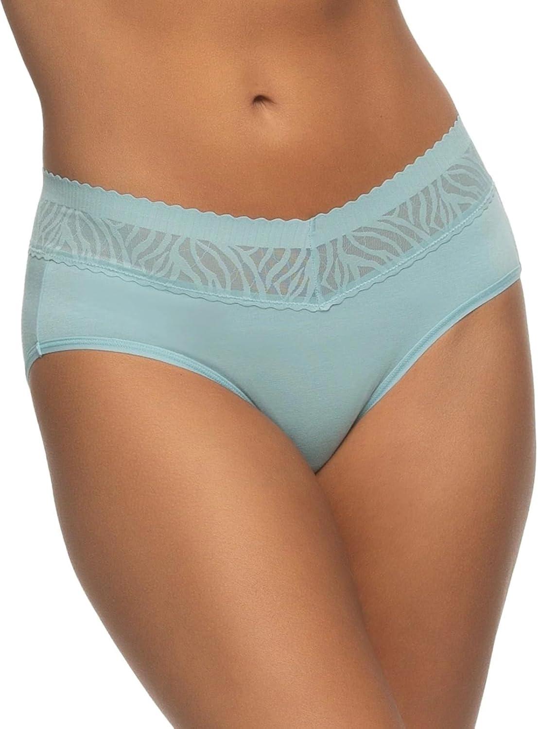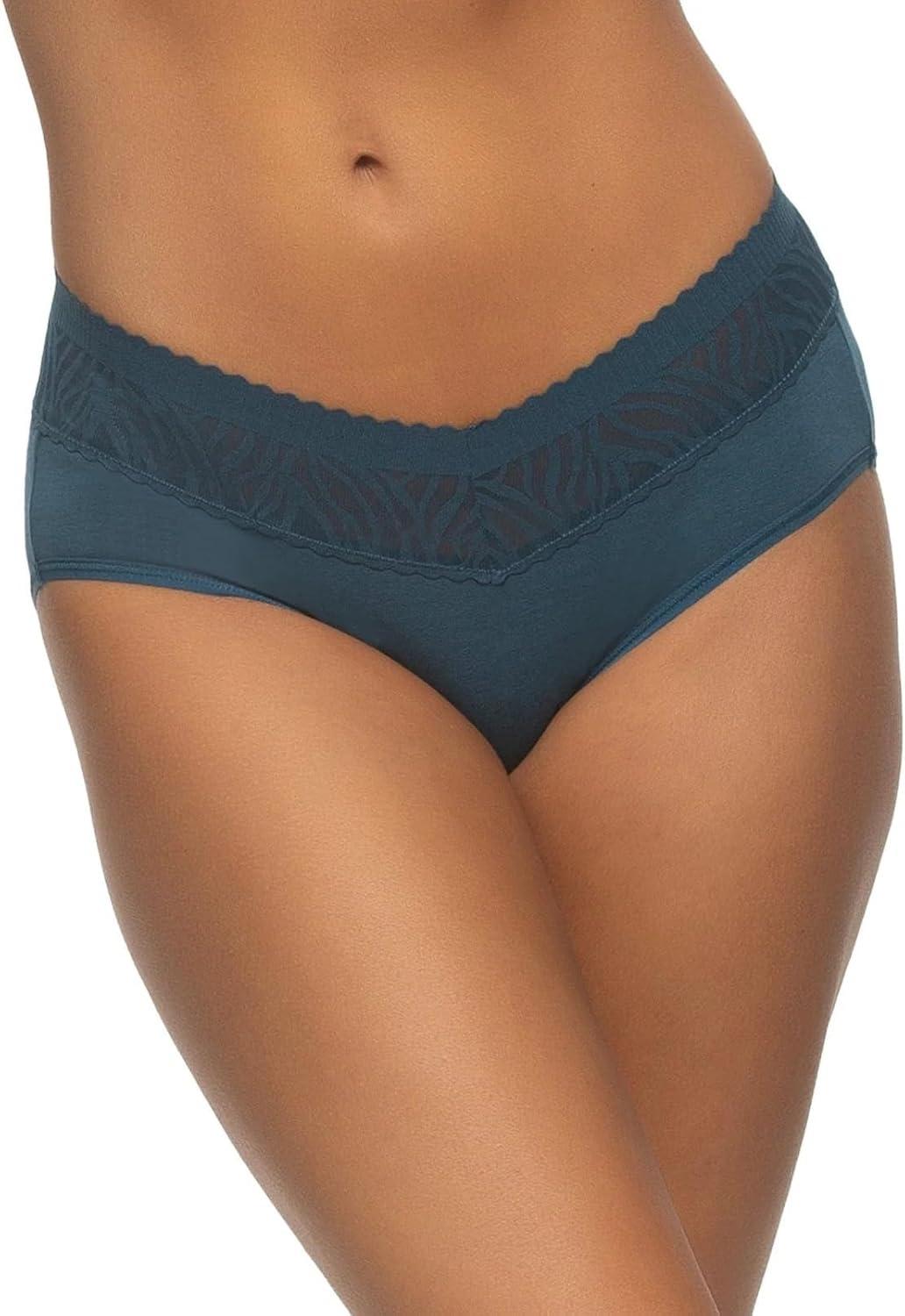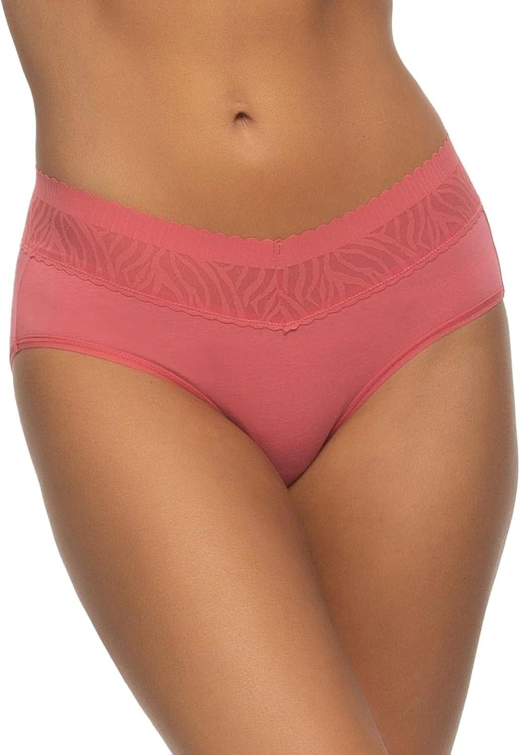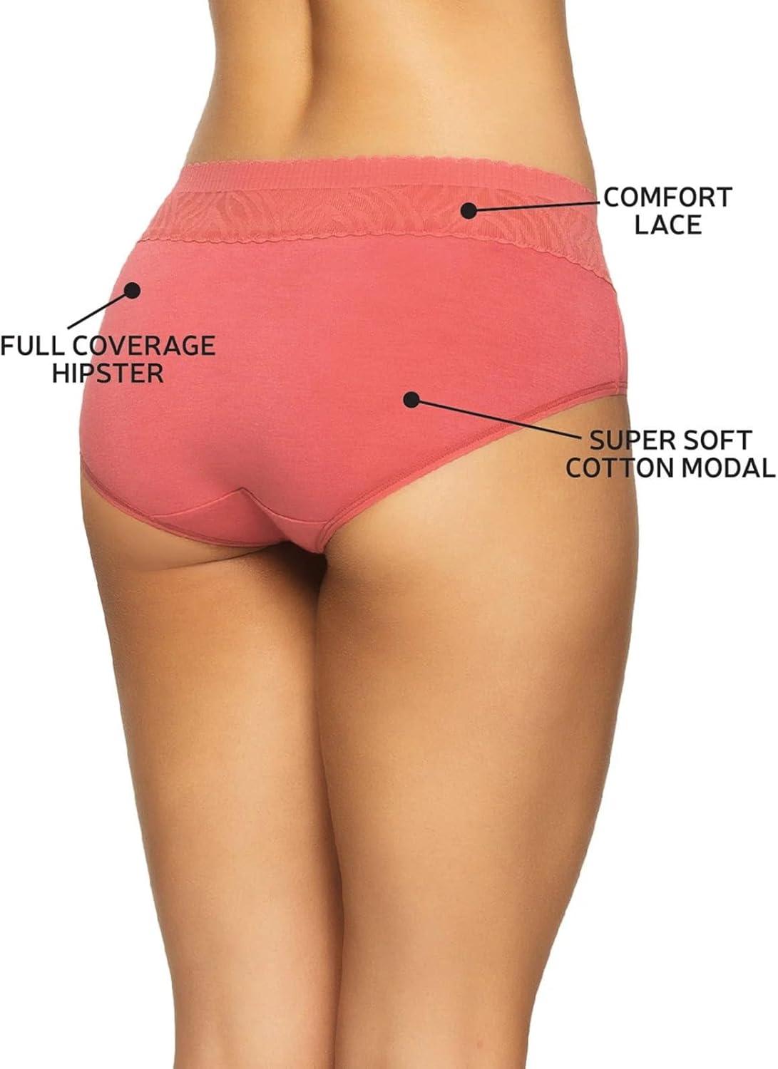 Our Stay In Place Hipster 5-Pack offers full back coverage with a flat lace waistband that stays put without digging in or rolling, ensuring a smoother look and ultimate comfort. Made from breathable cotton/modal fabric, this mid-waist style is sure to become your new favorite. Featuring stay-in-place technology, a pinch-free, no-dig waistband, and a tagless design, these hipsters offer unbeatable comfort and full coverage.