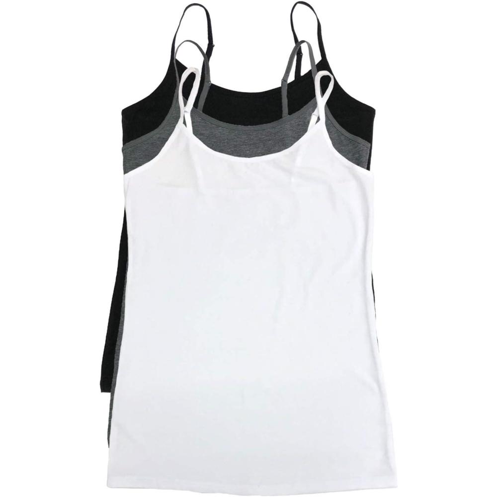 Felina Womens Cotton Modal Camisole, Adjustable Cotton Tank Top 3-Pack(Black Grey White)