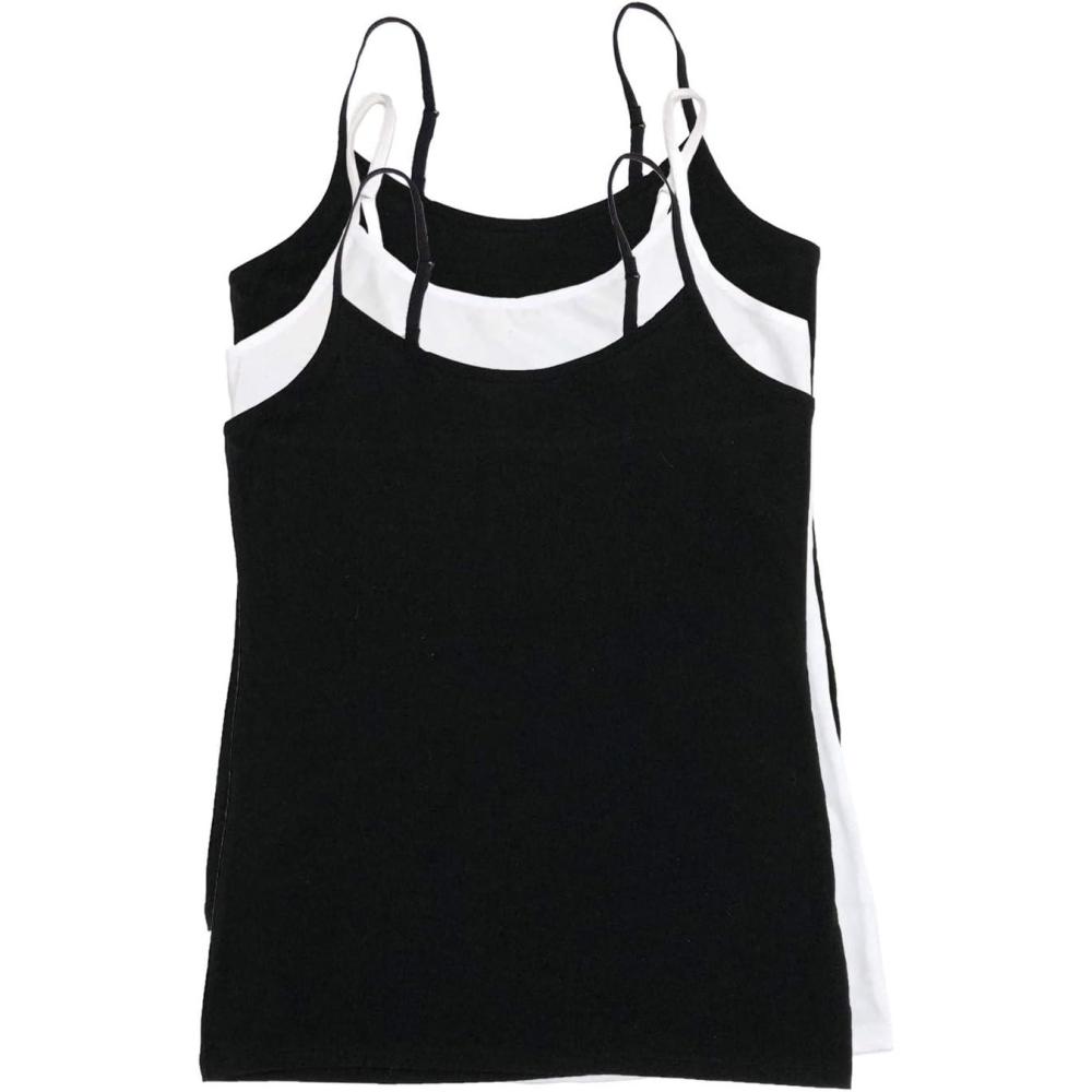 Felina Womens Cotton Modal Camisole, Adjustable Cotton Tank Top 3-Pack(Black White)